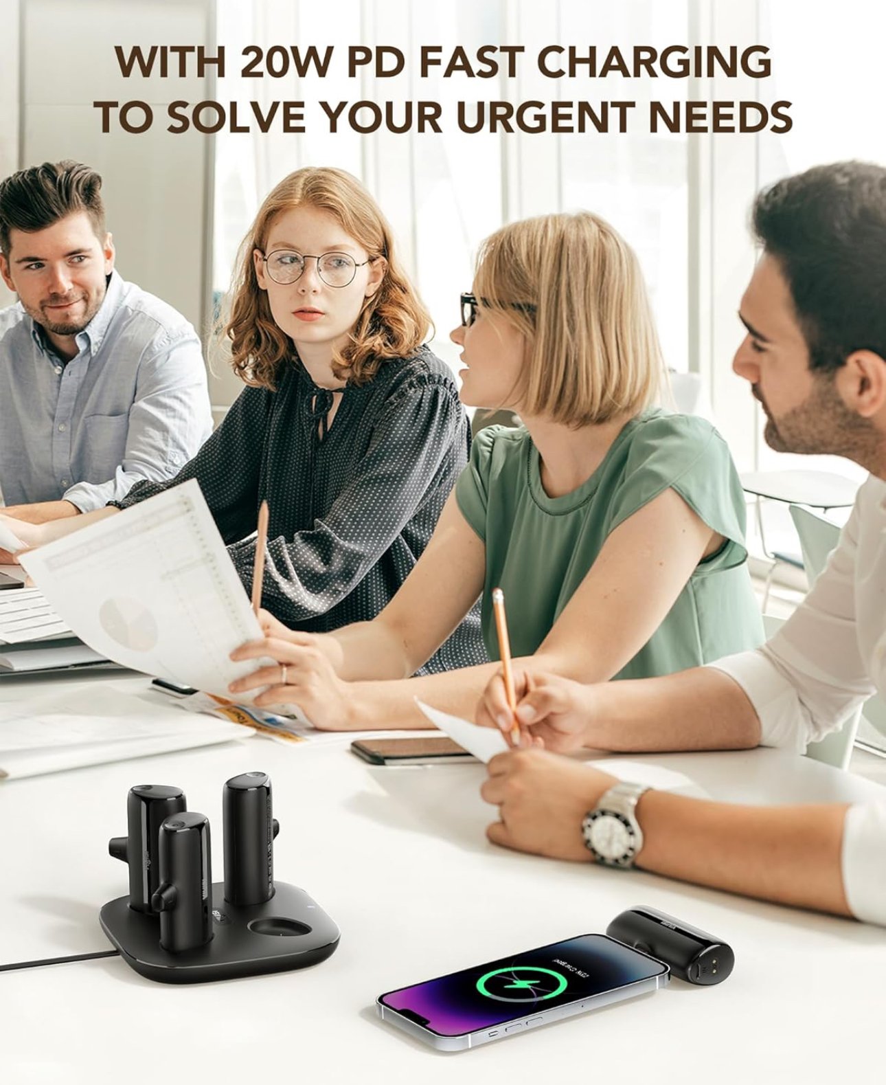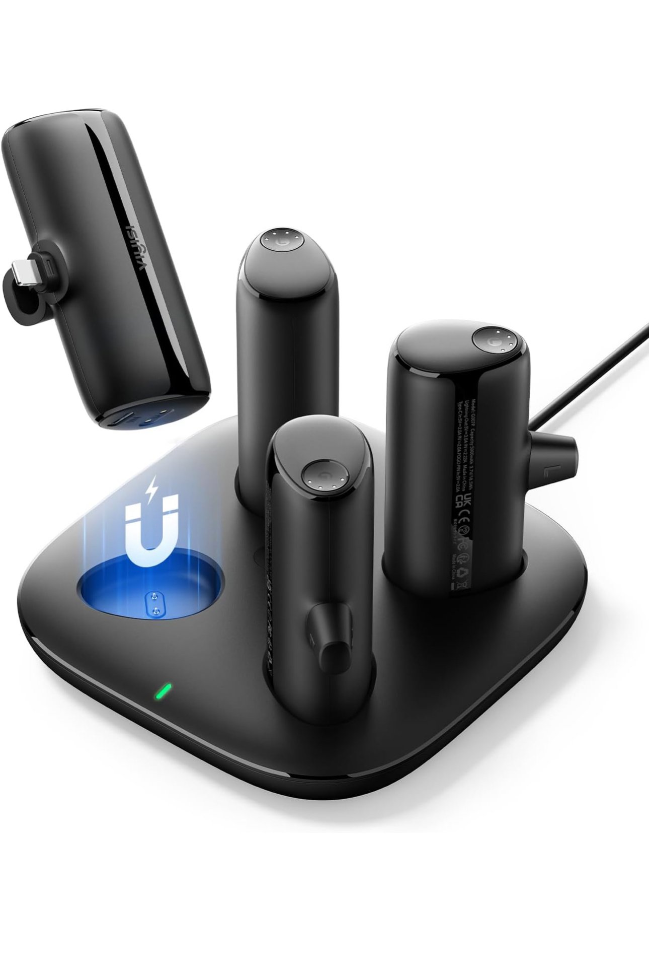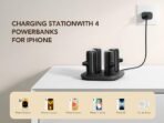 شواحن محمولة من VIYISI بسعة 5000 مللي أمبير في الساعة [4 قطع] ومجموعة محطة شحن لهاتف iPhone، وقاعدة شحن مشتركة مع 4 بنوك طاقة للمنزل والمقهى والمكتب والفندق والمطعم وما إلى ذلك